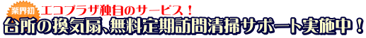 エコプラザにてレンジフード・エコフィルターをご利用のお客様に限り、3ヶ月に1度を目安に台所の換気扇廻りを無料にて清掃いたしております。